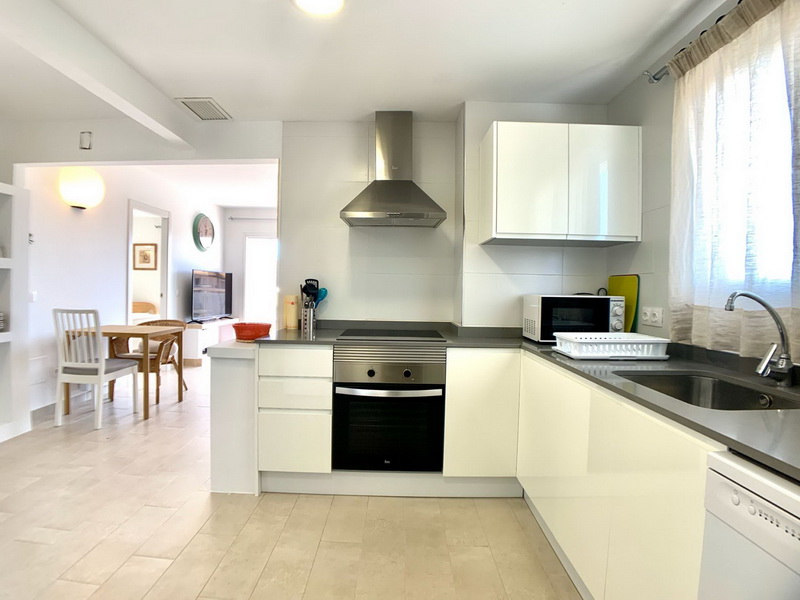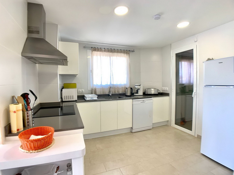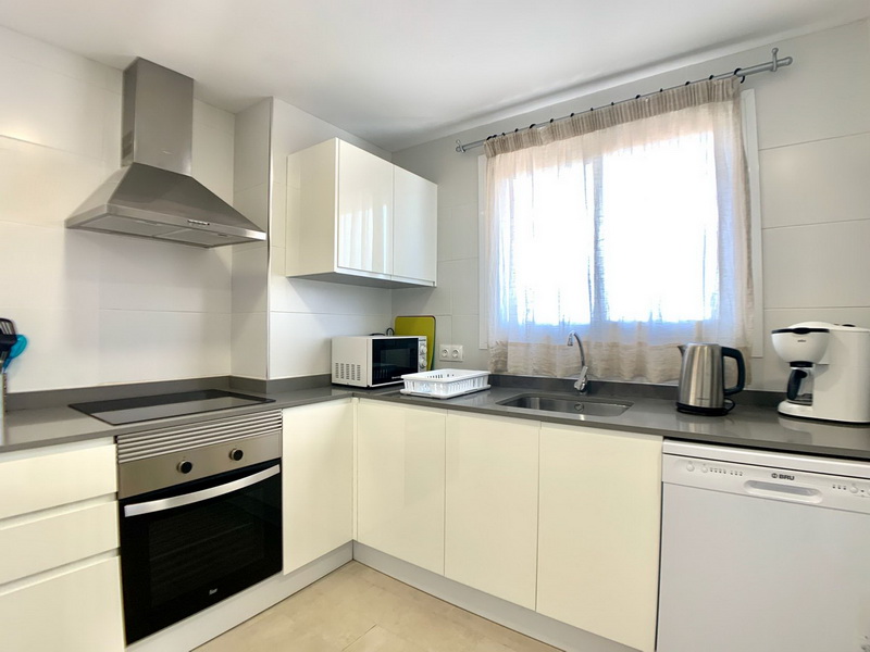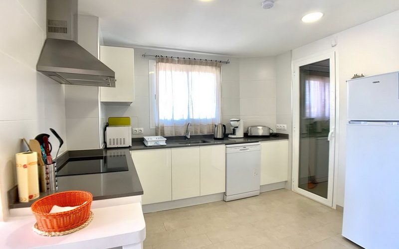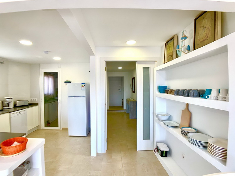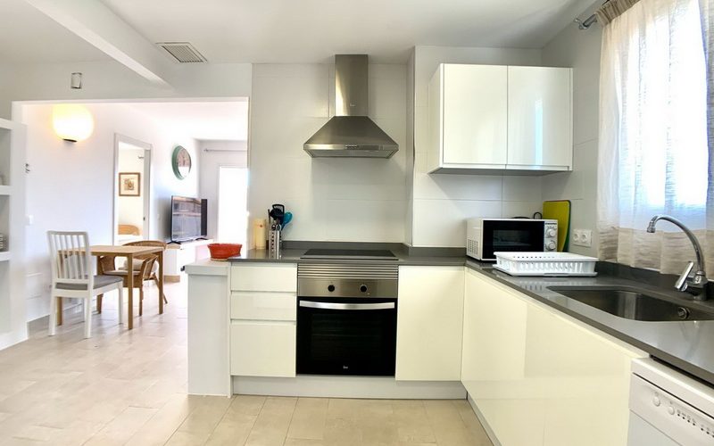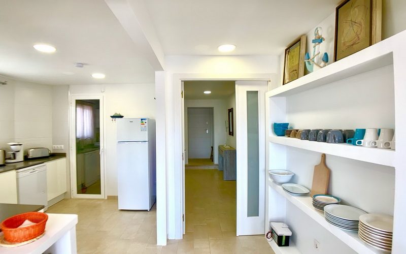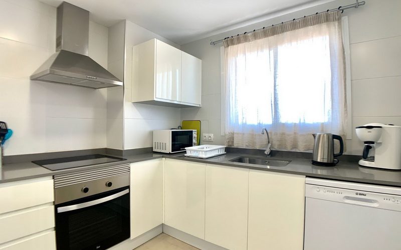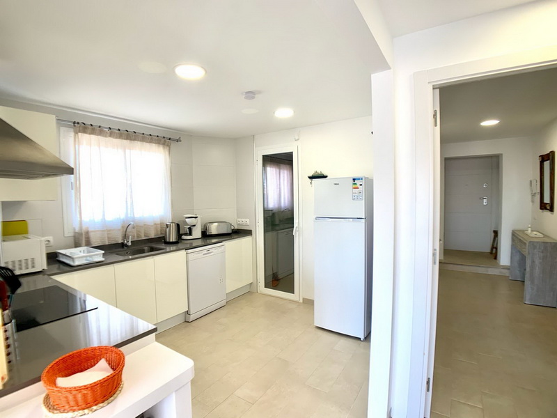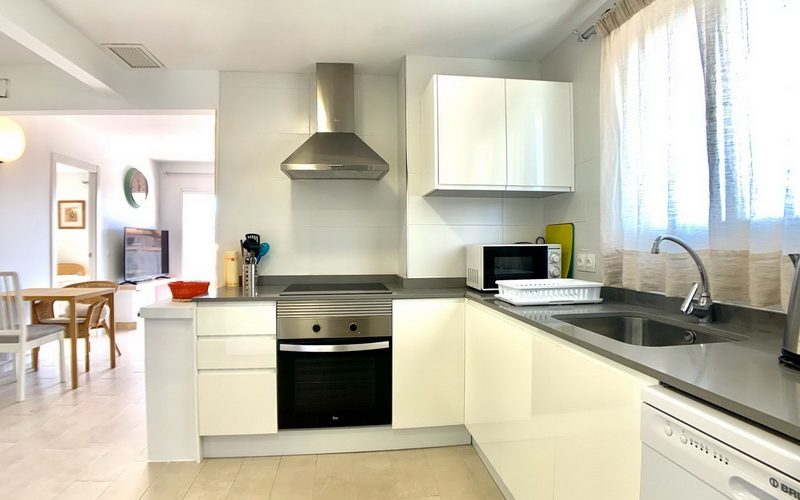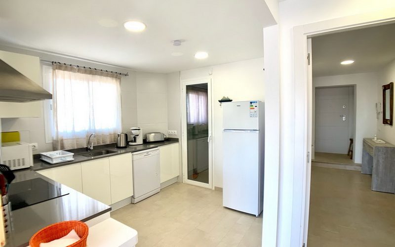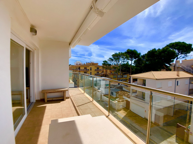 Dieses spektakuläre Penthouse vereint eine erstklassige Lage mit höchstem Komfort, nur wenige Schritte von der Strandpromenade und dem idyllischen Strand von Son Moll entfernt. Auf 100 m² funktionaler Wohnfläche bietet die Wohnung ein helles Wohn- und Esszimmer mit Balkon sowie eine moderne, voll ausgestattete Küche, die an einen praktischen Hauswirtschaftsraum anschließt.