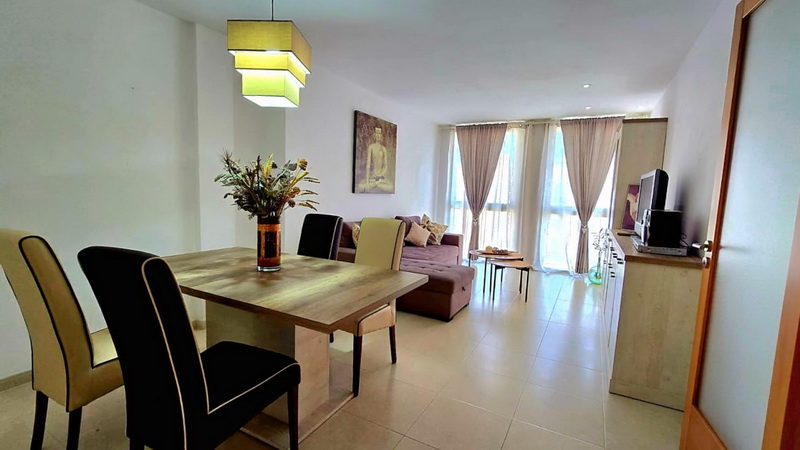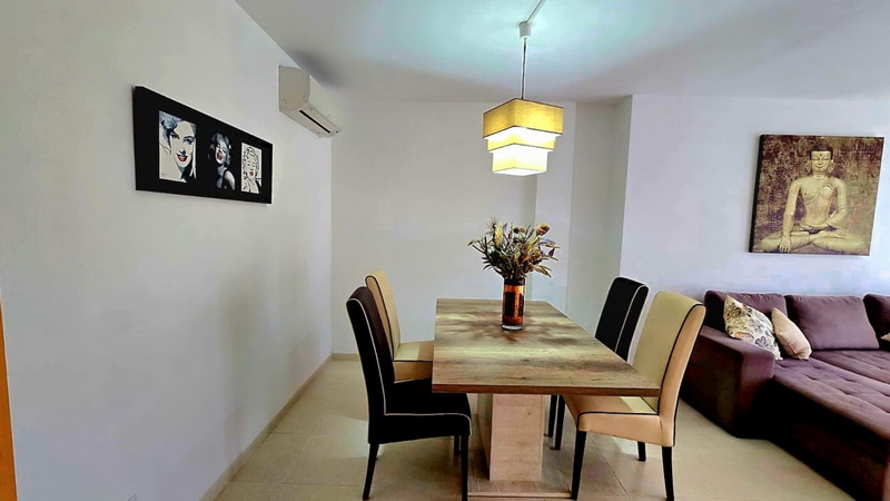 Dieses lichtdurchflutete Immobilie verbindet Komfort mit dem Charme des Meeres. Nur wenige Schritte vom beliebten Sandstrand von Son Moll entfernt erwartet Sie eine durchdachte Raumaufteilung: Ein großzügiges Wohn-Esszimmer mit raumhohen Fenstern bildet das Herzstück der Wohnung. Drei Schlafzimmer mit Einbauschränken bieten viel Platz, während zwei Badezimmer (eines mit Badewanne und eines mit Dusche) für einen entspannten Start in den Tag sorgen.