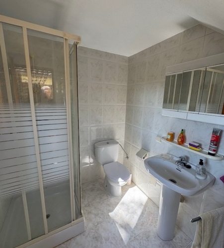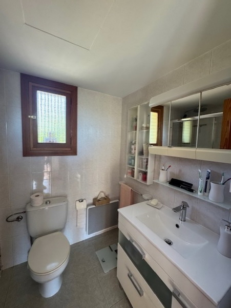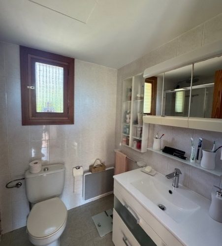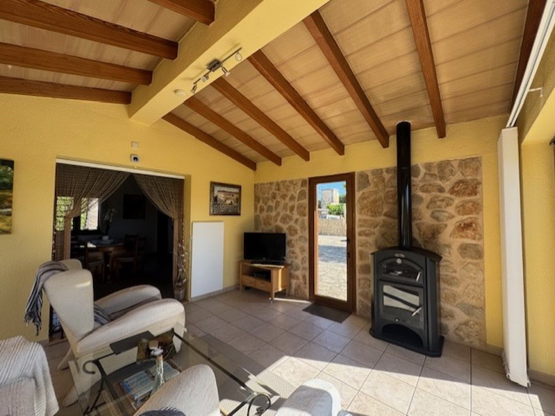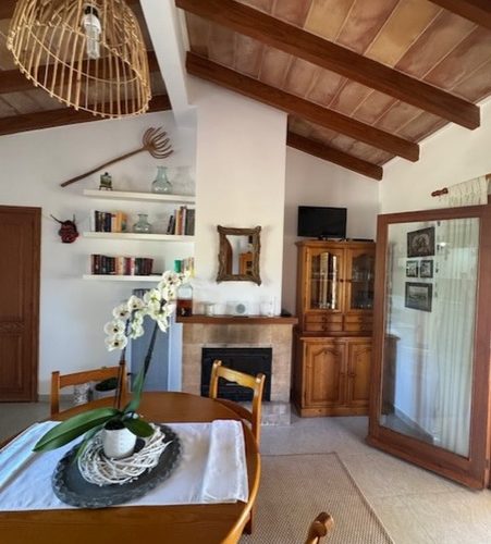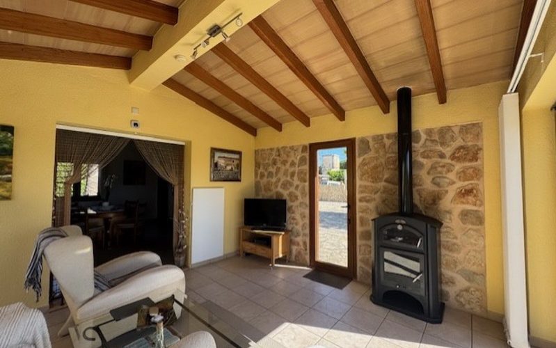 Das Haus, das 2018 erbaut wurde, verfügt über 120 m², die sich auf einer Etage verteilen. Es verfügt über zwei gemütliche Doppelschlafzimmer, die mit Einbauschränken, Klimaanlage und elektrischer Wandheizung ausgestattet sind, um Ihnen das ganze Jahr über maximalen Komfort zu bieten. Das Wohnzimmer mit seiner amerikanischen Küche und einem charmanten Kamin ist der perfekte Ort, um mit der Familie oder Freunden zu feiern. Darüber hinaus lädt das verglaste Kabinett mit vollständig zu öffnenden Fenstern zum Genießen der frischen Luft und des Tageslichts ein.