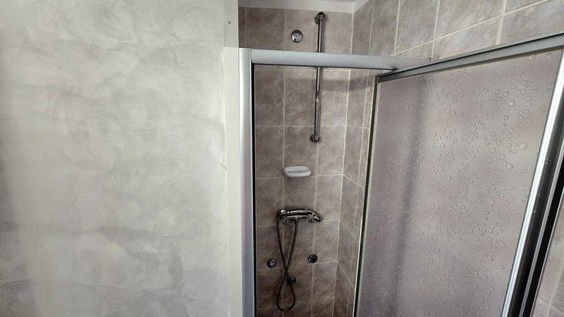 Ca. 40m² Wohnfläche, aufgeteilt in Wohn – Esszimmer mit Balkon und Meerblick, Küche, ein Schlafzimmer und ein Badezimmer mit Dusche.