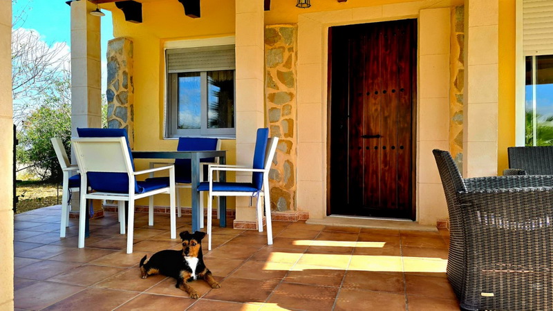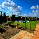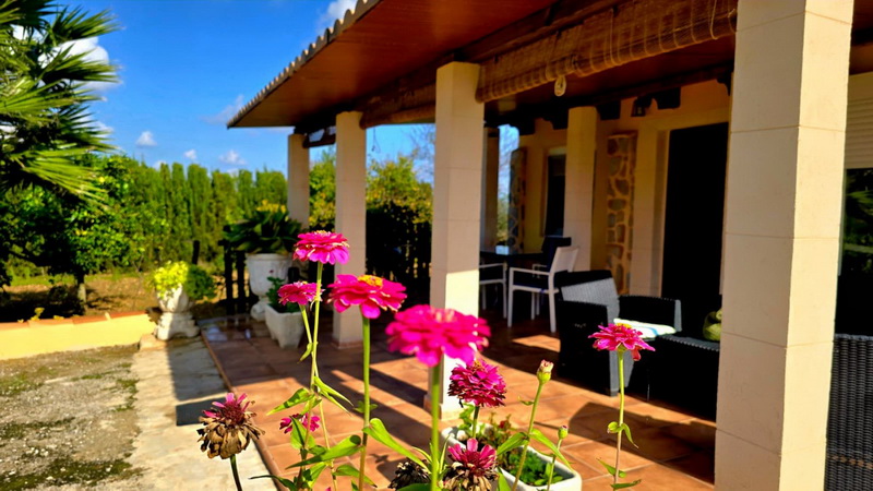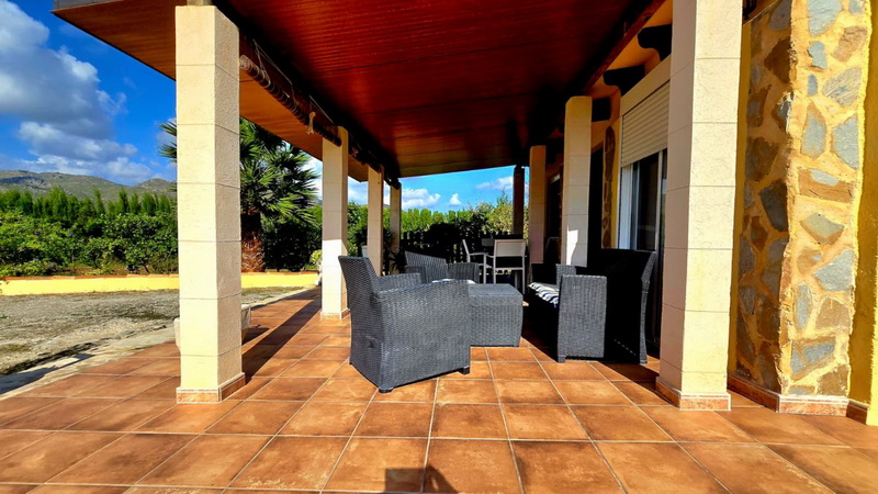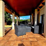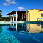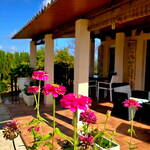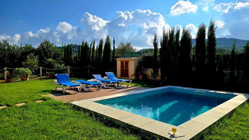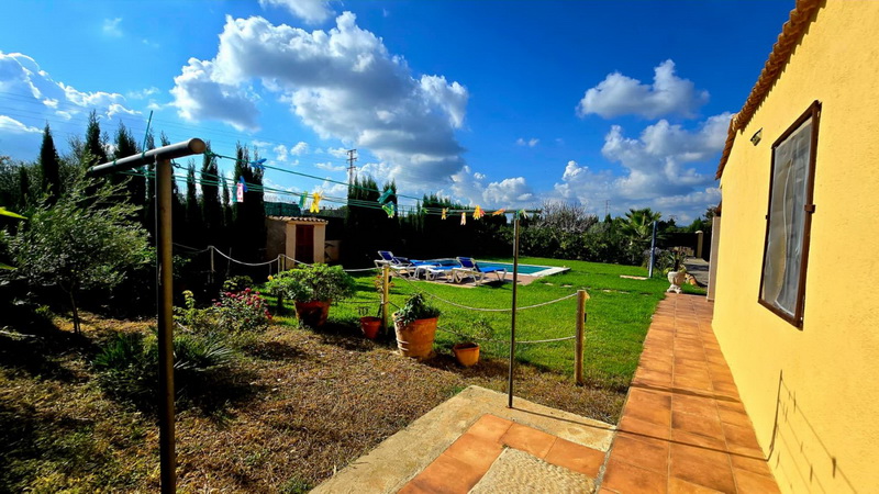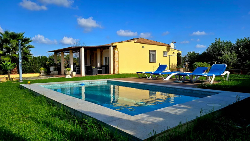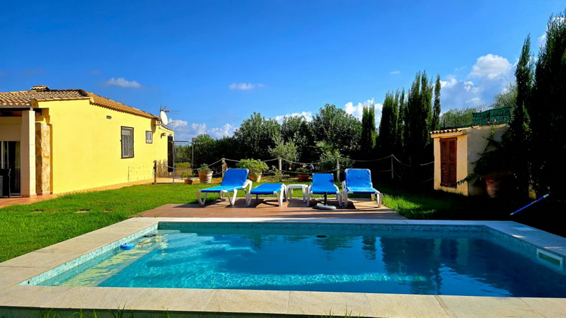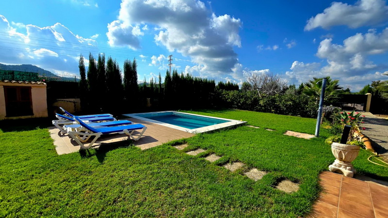 Eine übrdachte Terrasse spendet Schatten und der Pool ist im Sommer für eine angenehme Abkühlung gedacht