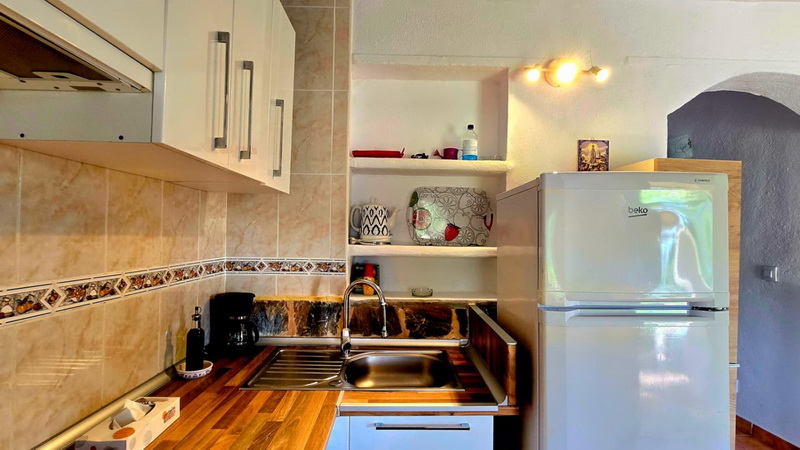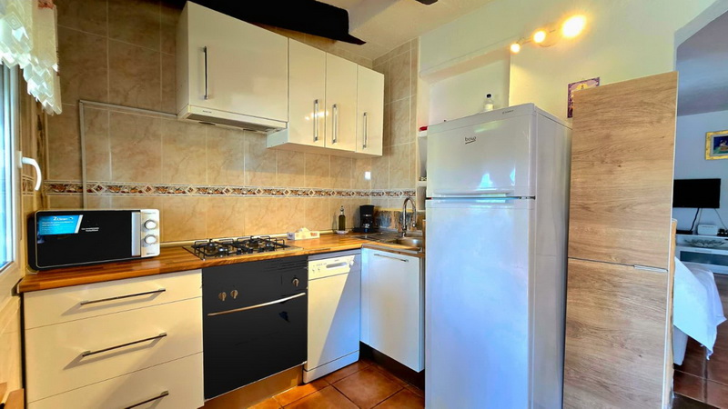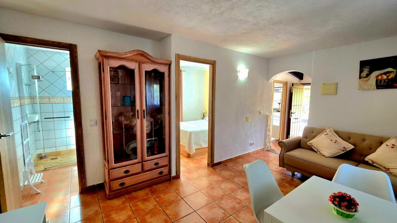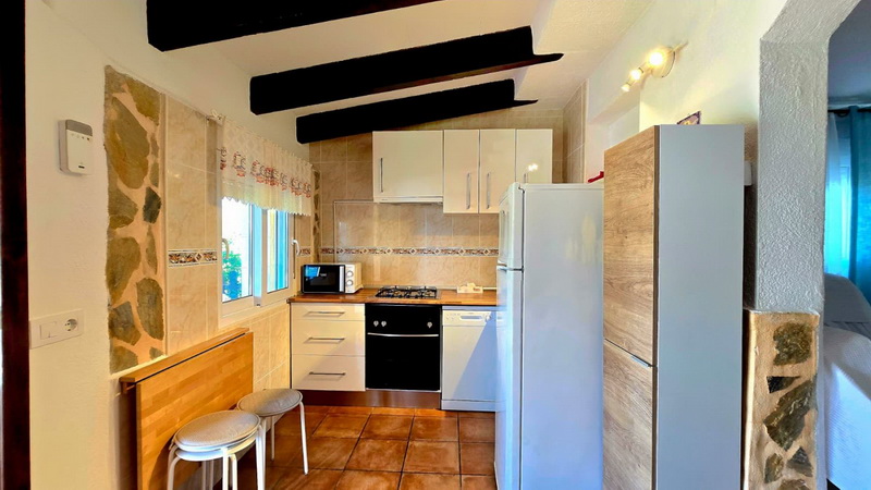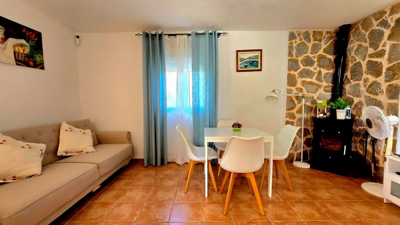 Wohnesszimmer mit Kamin, Küche, 2 Schlafzummer, Bad.